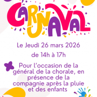 Publiée le 17/03/2026Le jeudi 26 mars de 14h à 17h la résidence se met aux couleurs du Carnaval ! À l’occasion de la répétition générale avec la compagnie Après la Pluie et la présence des enfants, l'après-midi sera haut en couleur. Les enfants viendront [...] Lire la suite