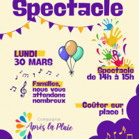Publiée le 18/03/2026Bonjour, Le lundi 30 mars, la Compagnie après la pluie en association avec l'EHPAD la Carrairade et la classe de CM1 du Rove présentent leur spectacle. C'est après une grande préparation de tous ces artistes qu'ils vont nous faire l'honneur de leur mise en scène. Venez nom [...] Lire la suite