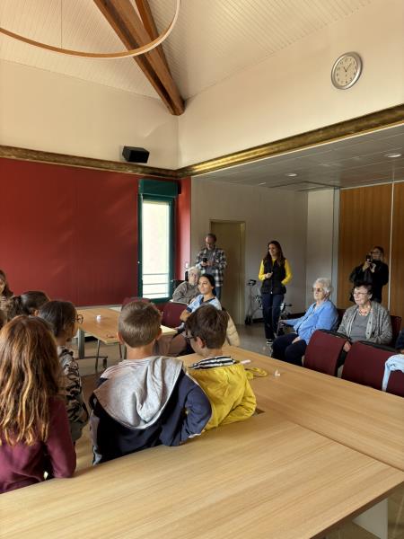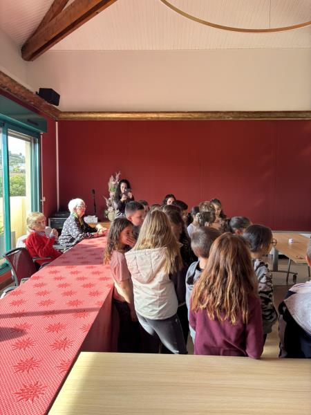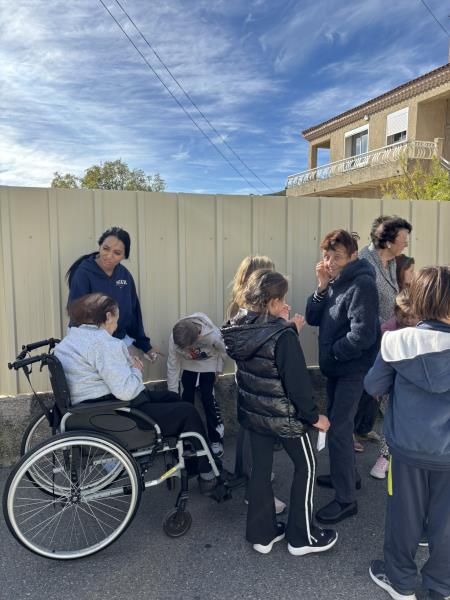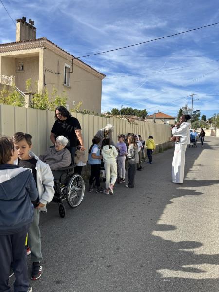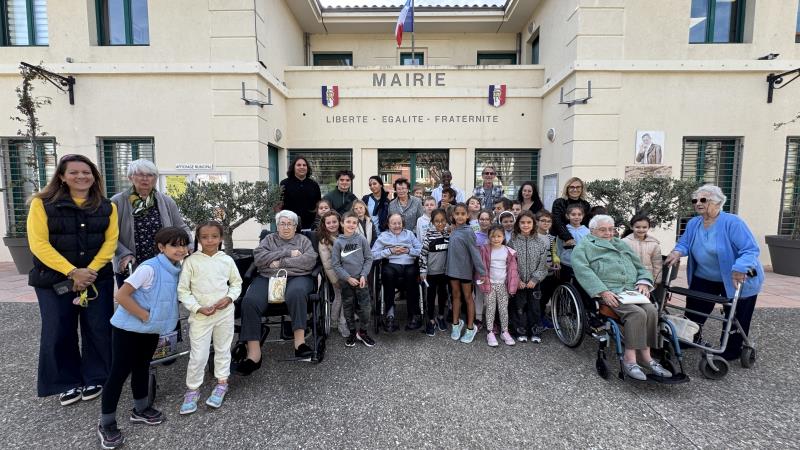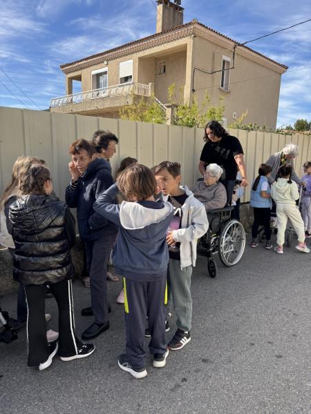 Lundi matin, nous avons eu le plaisir d'accueillir une classe de CE1-CE2 du Rove pour une balade intergénérationnelle dans le village. Ce fut l'occasion d'échanger avec les enfants, de partager des bonbons et d'écouter une chanson interprétée par les élèves, créant ainsi des souvenirs mémorables pour tous.